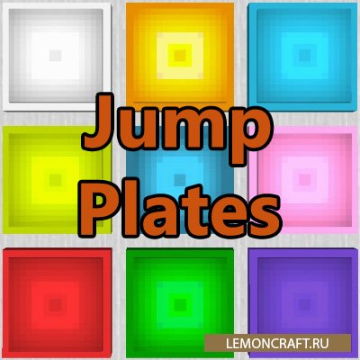 Мод Jump Plates добавит в игру разноцветные плиты-батуты. Всего будет добавлено 9 таких батутов, каждый из которых имеет свои характеристики при отталкивании игрока.
